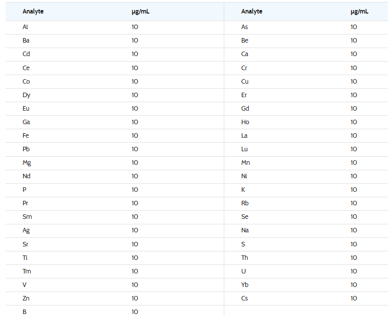 10 ppm 43 Element ICP Calibration/Quality Control Standard-INORGANIC VENTURES (INC IGV) INORGANIC VENTURE Stock Stock por sucursal US$ 830.00 cantidad Agregar al carro Encargar