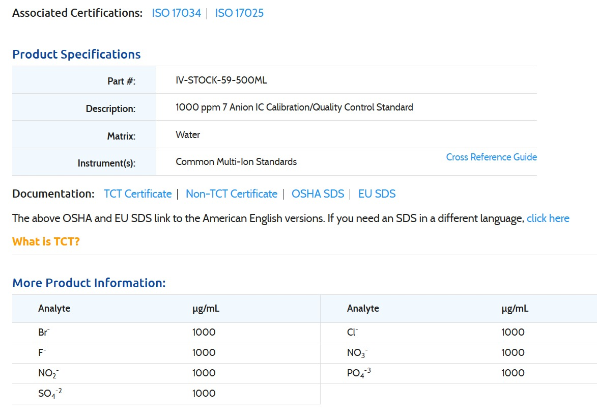 1000 ppm 7 Anion IC Calibration/Quality Control Standard 500ML-INORGANIC VENTURES,IV-STOCK-59-500ML (INC IGV) Stock Stock por sucursal US$ 410.00 cantidad Agregar al carro Encargar