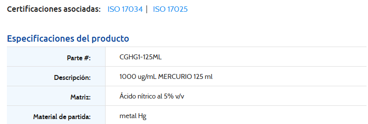 1000 ug/mL MERCURIO 125 ml 125 ML-INORGANIC VENTURES, CGHG1-125ML (INC IGV) Stock Stock por sucursal US$ 84.00 cantidad Agregar al carro Encargar