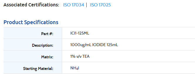 1000ug/mL IODIDE 125mL-INORGANIC VENTURES, ICI1-125ML (INC IGV) INORGANIC VENTURE Stock Stock por sucursal US$ 91.00 cantidad Agregar al carro Encargar