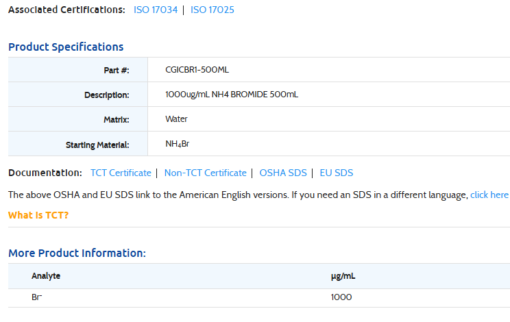 1000ug/mL NH4 BROMIDE 500mL-INORGANIC VENTURES,CGICBR1-500ML (INC IGV) INORGANIC VENTURE Stock Stock por sucursal US$ 150.00 cantidad Agregar al carro Encargar
