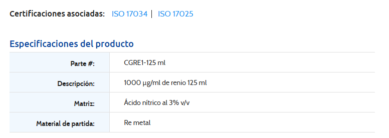 1000ug/mL RHENIUM 125ML-INORGANIC VENTURES, CGRE1-125ML (INC IGV) INORGANIC VENTURES Stock Stock por sucursal US$ 125.00 cantidad Agregar al carro Encargar