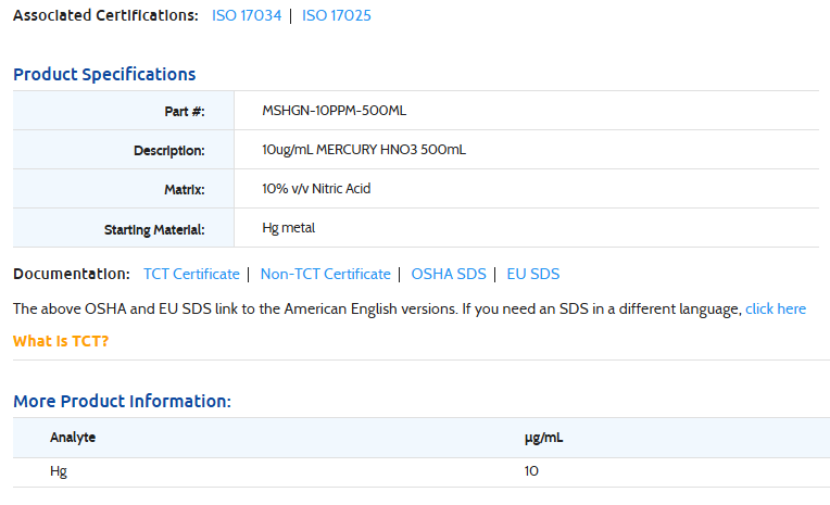 10ug/mL MERCURY HNO3 500mL-INORGANIC VENTURES, MSHGN-10PPM-500ML (INC IGV) INORGANIC VENTURE Stock Stock por sucursal US$ 175.00 cantidad Agregar al carro Encargar