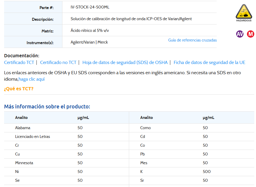 SLUCION DE CALIBRACION DE LONGITUD DE ONDA ICP-OES DE VARIAN/AGILENT 500ML-INORGANIC VENTURES, IV-STOCK-24-500ML (INC IGV) INORGANIC VENTURE Stock Stock por sucursal US$ 500.00 cantidad Agregar al carro Encargar